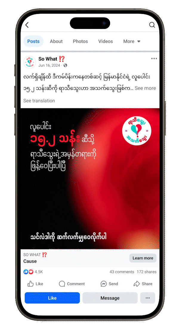 A three-and-a-half-month social media campaign on So What!?’s Facebook page was launched, with the aim to challenging views online around menstrual blood, using our films, educational content, influencers and a UGC campaign.