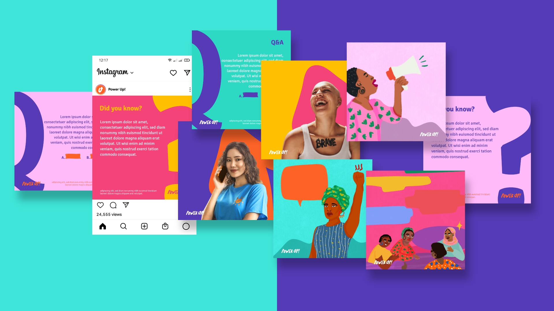 The dynamic logo embodies PowerUp’s approach to listen, inspire, and bring diverse feminist movements together for radical transformative change.