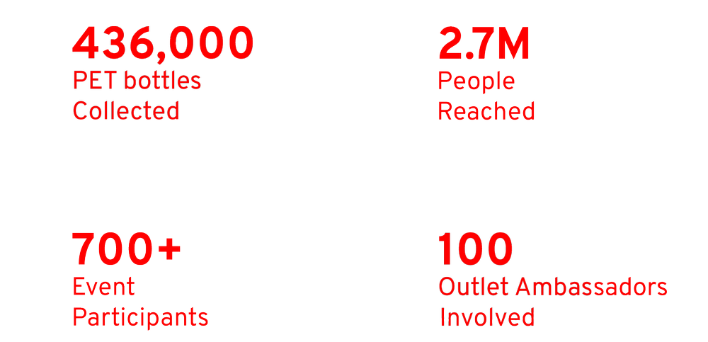 In addition to the main events, pop-up events were organised at the ambassador outlet to increase offline visibility in the neighbourhood and in collaboration with Strategy First International College to engage with a younger audience through fun activities and a panel discussion with experts, providing insights into Coca-Cola’s mission to reduce waste.