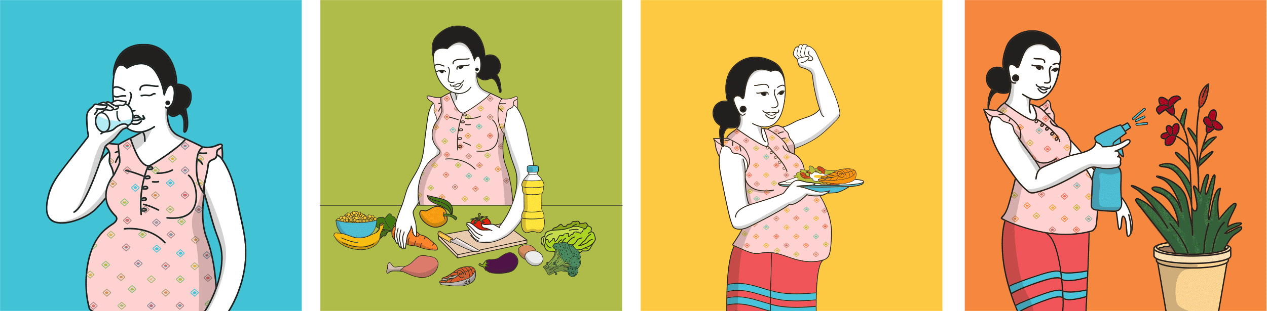 For more detailed in depth reference, we designed four booklets centered around the same diet model that contain detailed explanations of nutrition and dietary needs for PLW mothers.