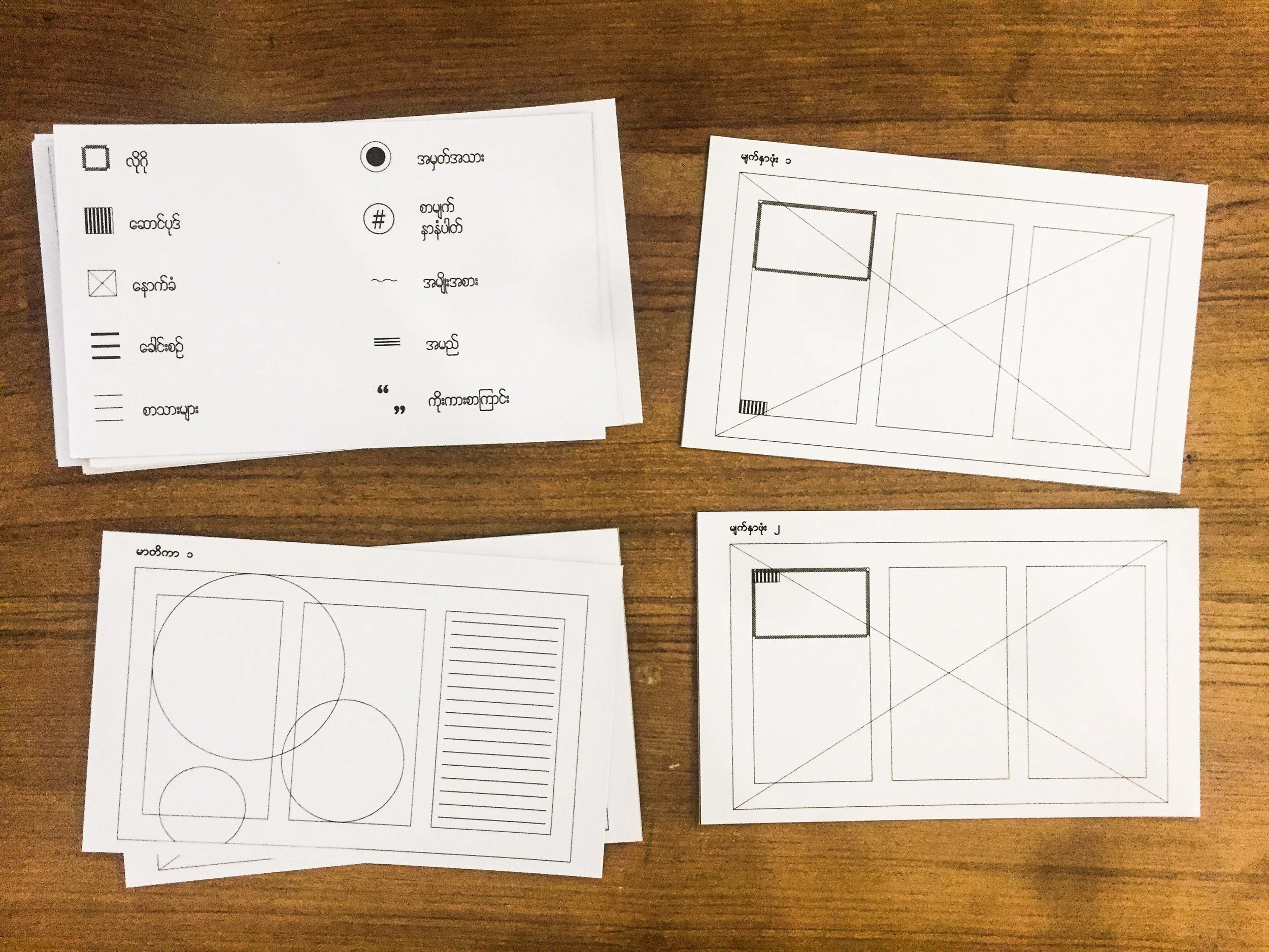 Together, we developed a board game to steer the creative direction for the content, design and layout. As they played the game, the media team was faced with content topics, planning tactics, design problems, and other components to help them find inspirations and dictate their approaches. We also provided them with rulers, icon stickers, logos, simplified templates, graphic design basics and flash cards to help them visualize their ideas.